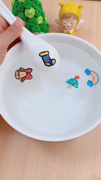 ✅Utilizați aceste carioci magice pentru a desena pe o linguriță din ceramică după care puneți linguriță în apă.